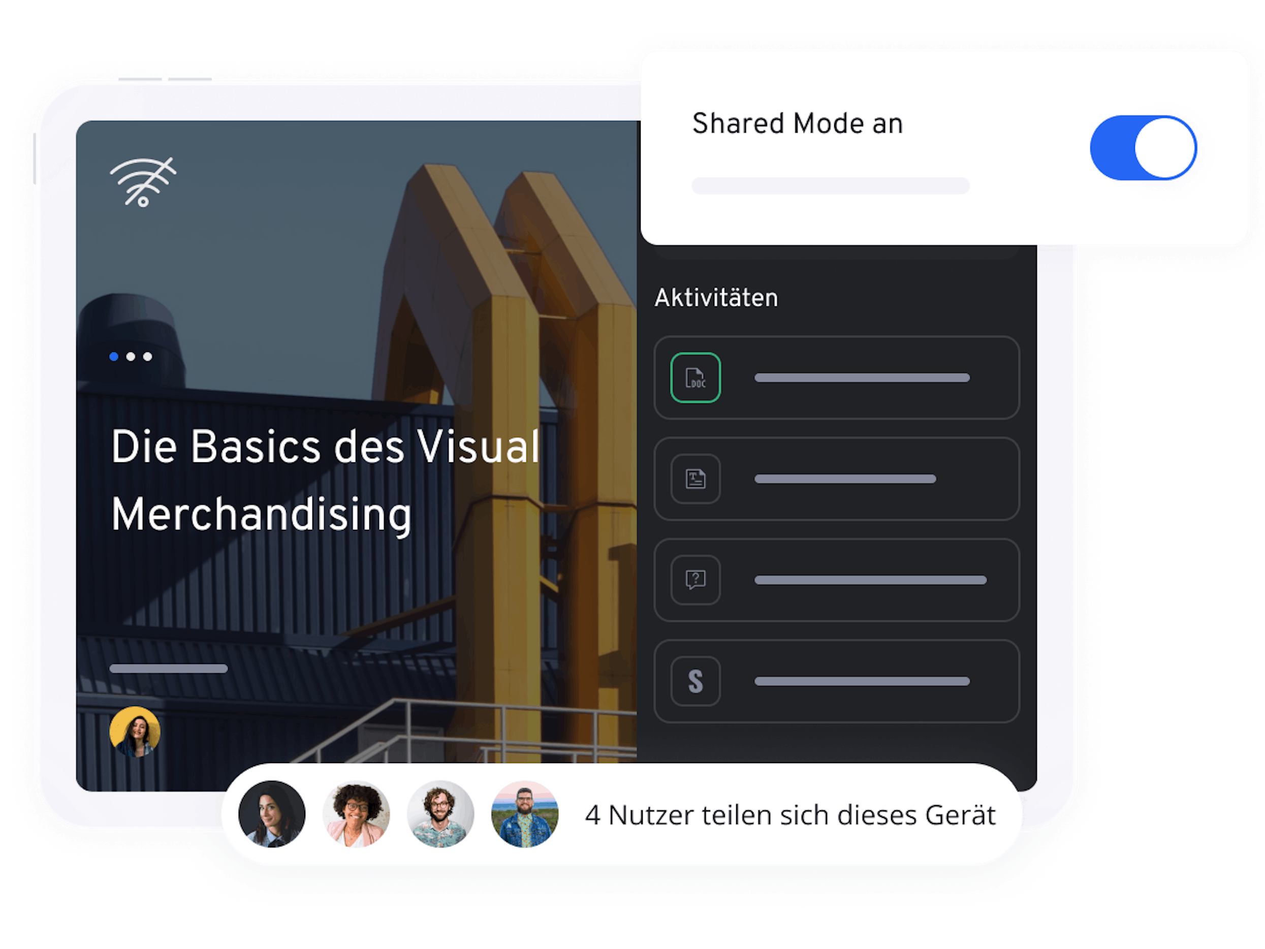 Schwache Verbindung? Kein Thema. Im Shared Mode können sich Lernende ein Gerät teilen. Dabei werden die Kurse einmal für das gesamte Team heruntergeladen und Statistiken für jeden einzelnen Lernenden aufgezeichnet.