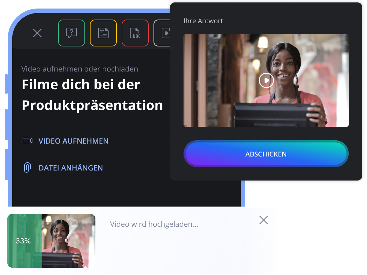 Übung macht den Meister. Bilden Sie Ihre Mitarbeitenden weiter, ohne sie bei der Arbeit zu unterbrechen. Dank Video-Evaluierung können sie sich stetig und direkt über die mobile Anwendung verbessern.