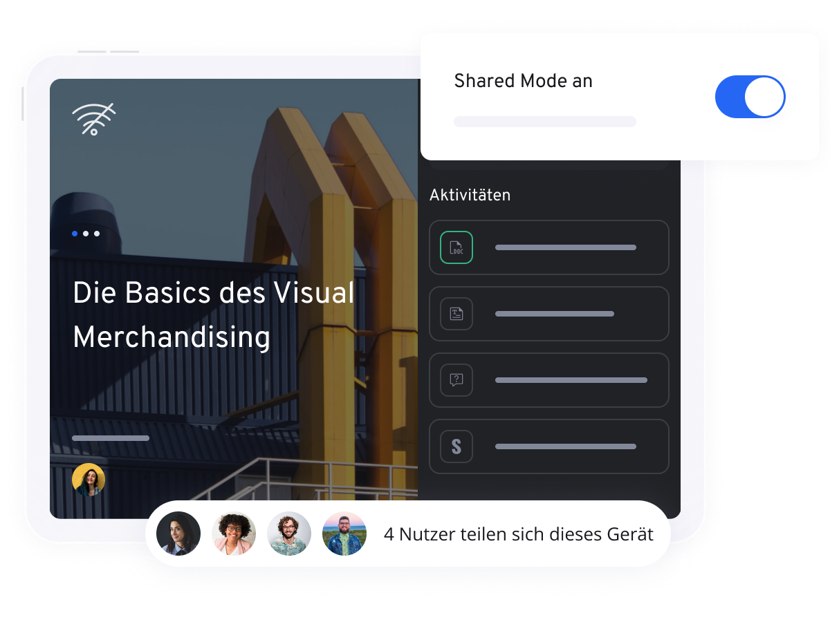 Schwache Verbindung? Kein Thema. Im Shared Mode können sich Lernende ein Gerät teilen. Dabei werden die Kurse einmal für das gesamte Team heruntergeladen und Statistiken für jeden einzelnen Lernenden aufgezeichnet.