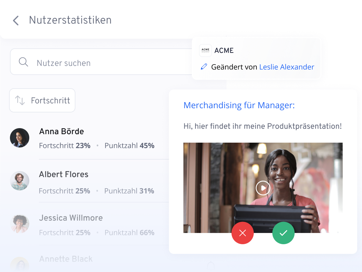 Manager:innen kennen ihre Teams am besten. Dank des integrierten Dashboards können sie Lernfortschritte in Echtzeit verfolgen und Mitarbeitende direkt über das Smartphone oder Tablet coachen.