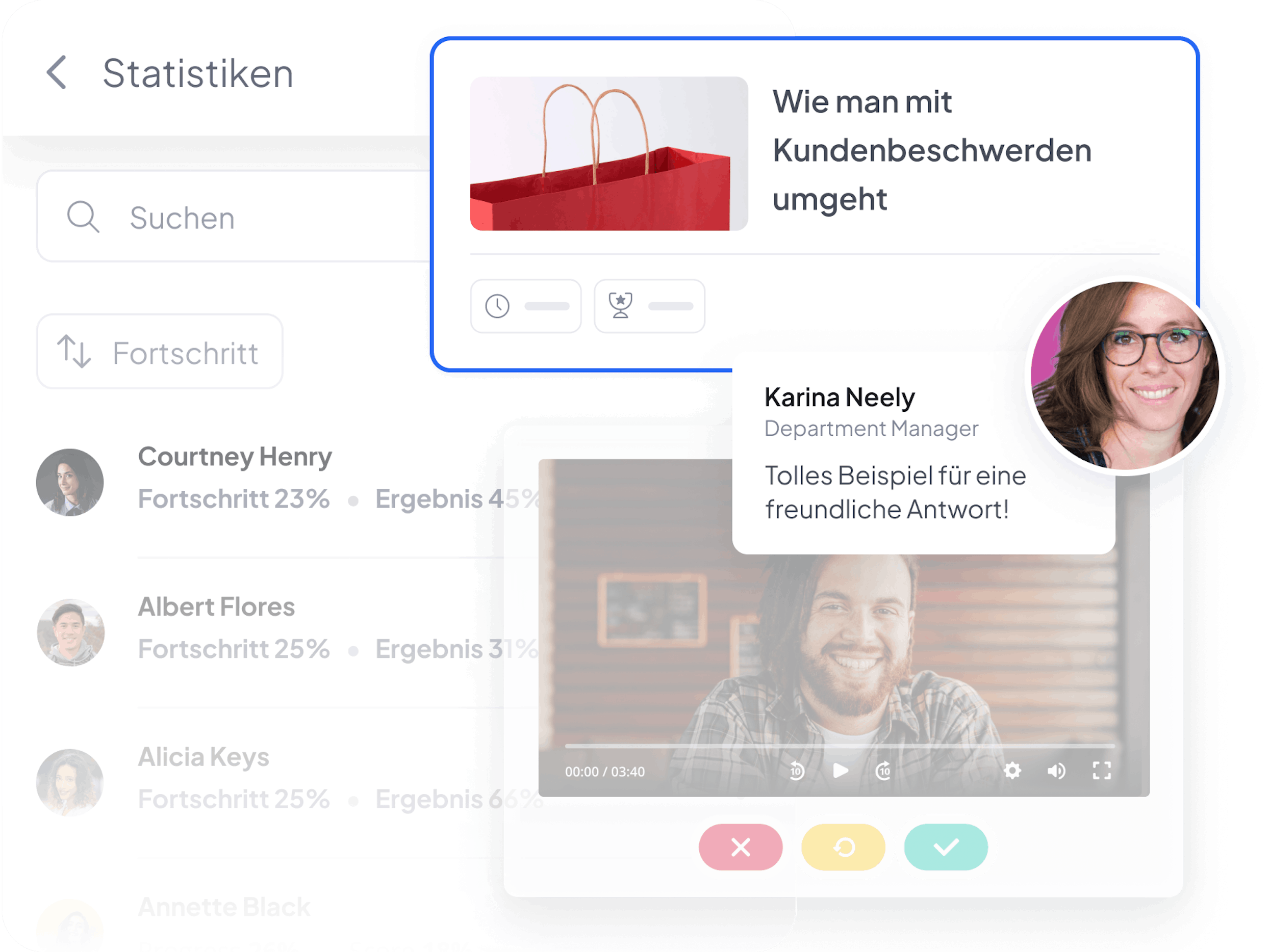 Die Kommunikation mit Ihren Frontline-Teams ist holprig? Geben Sie ihnen die Möglichkeit, sich vom ersten Tag an gezielt weiterzubilden - mit einer ansprechenden mobilen Oberfläche. Kurze, gamifizierte Trainingseinheiten helfen, Wissen schnell und zielgerichtet zu vermitteln.