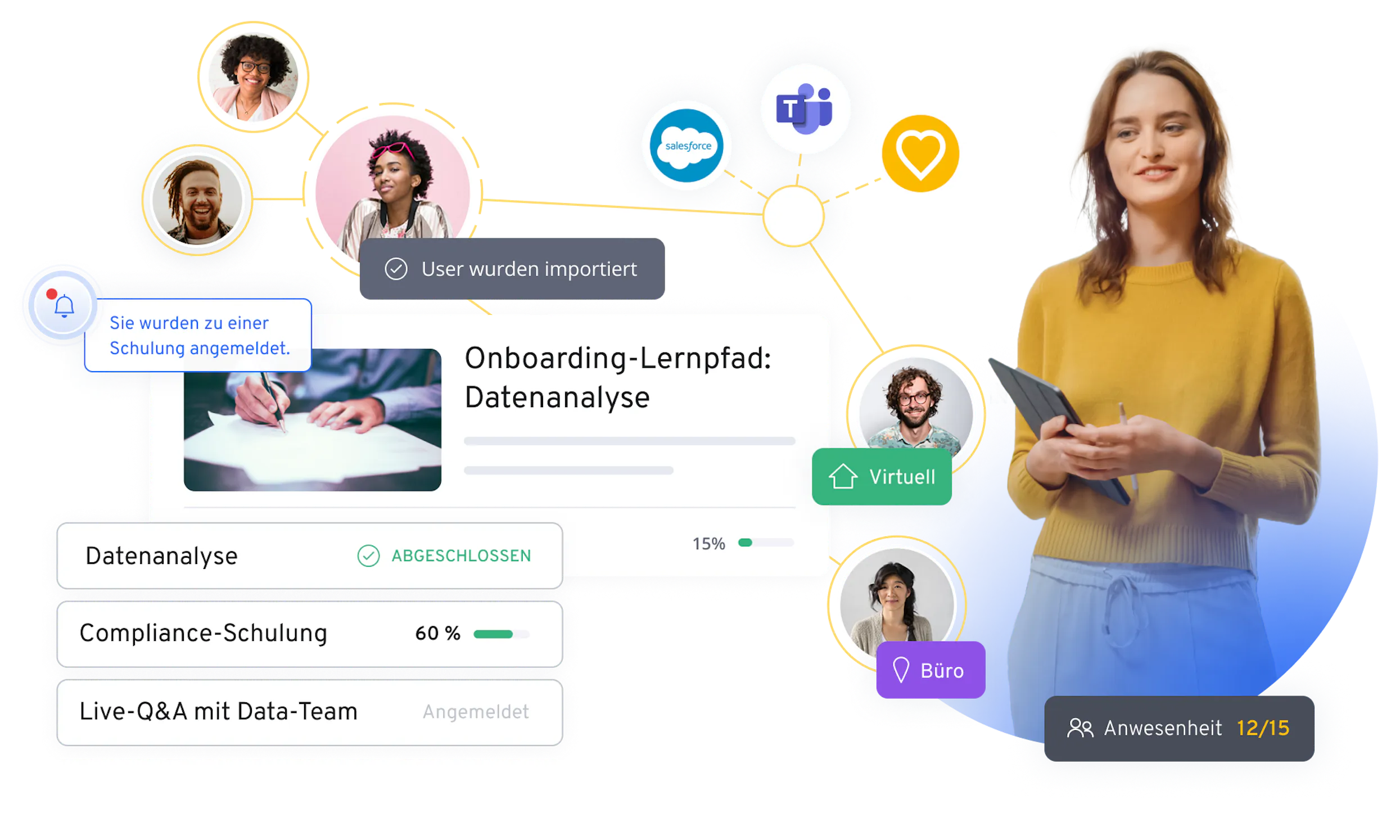 Arbeiten Sie neue Mitarbeitende schneller ein und vernetzen Sie sie intern.