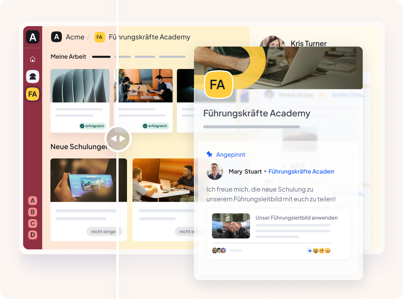 Schluss mit Einheitslösungen. Segmentieren Sie Zielgruppen nach Funktion oder Thema, erstellen Sie personalisierte Akademien und bieten Sie individuelle Lernerlebnisse, die Relevanz und Abschlussquoten steigern.