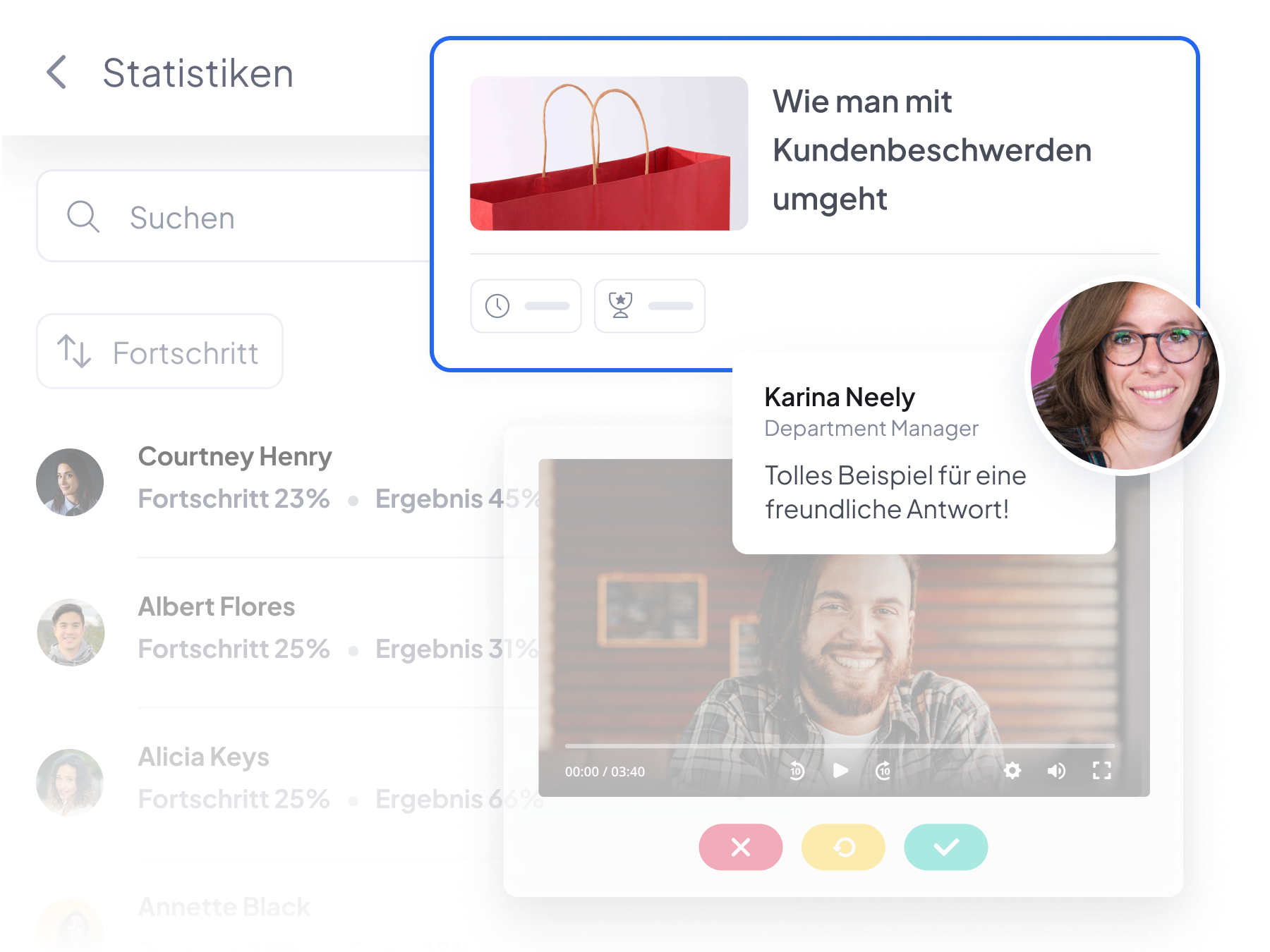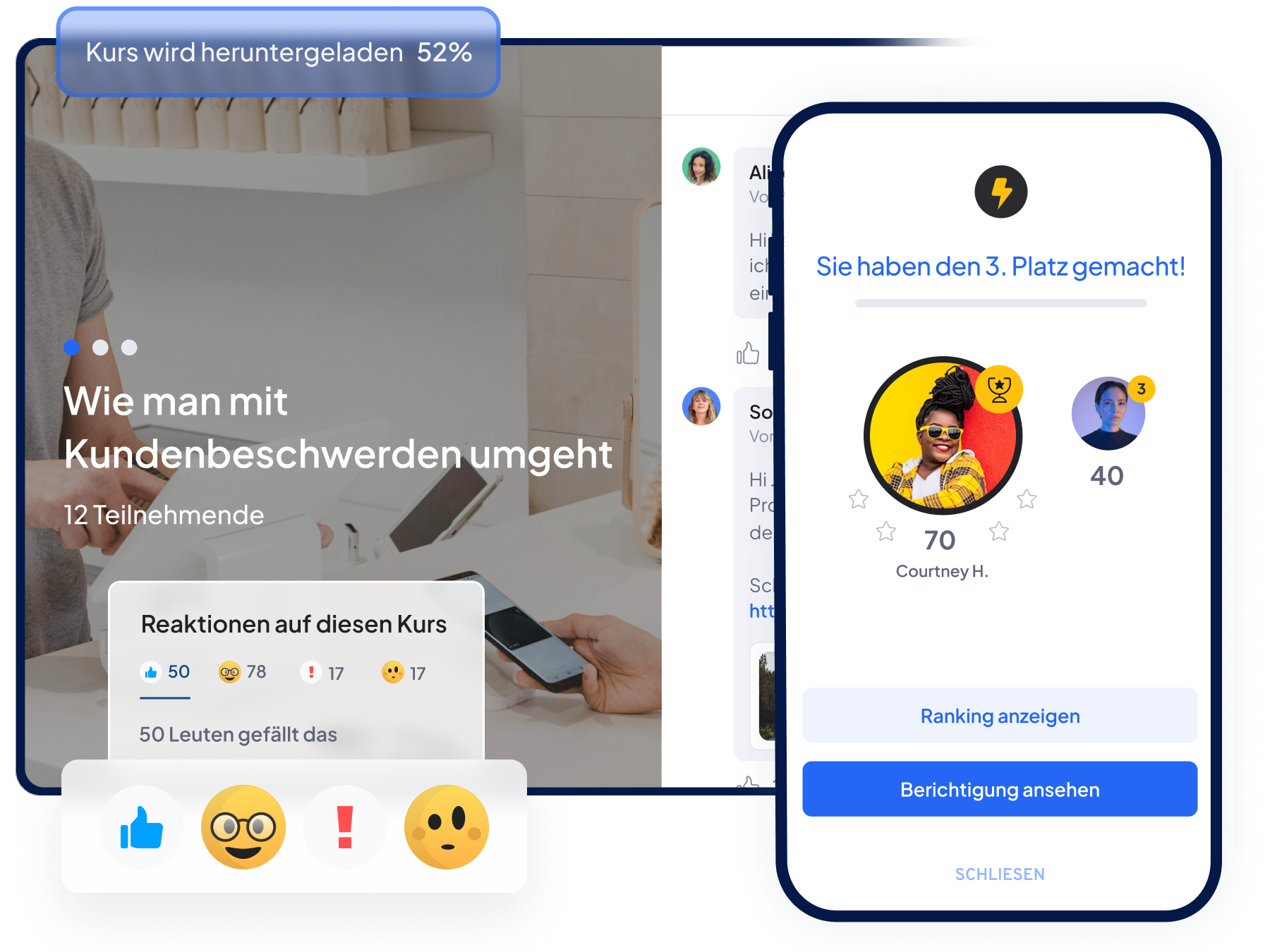 Die Kommunikation mit Ihren Frontline-Teams ist holprig? Geben Sie ihnen die Möglichkeit, sich vom ersten Tag an gezielt weiterzubilden - mit einer ansprechenden mobilen Oberfläche. Kurze, gamifizierte Trainingseinheiten helfen, Wissen schnell und zielgerichtet zu vermitteln.