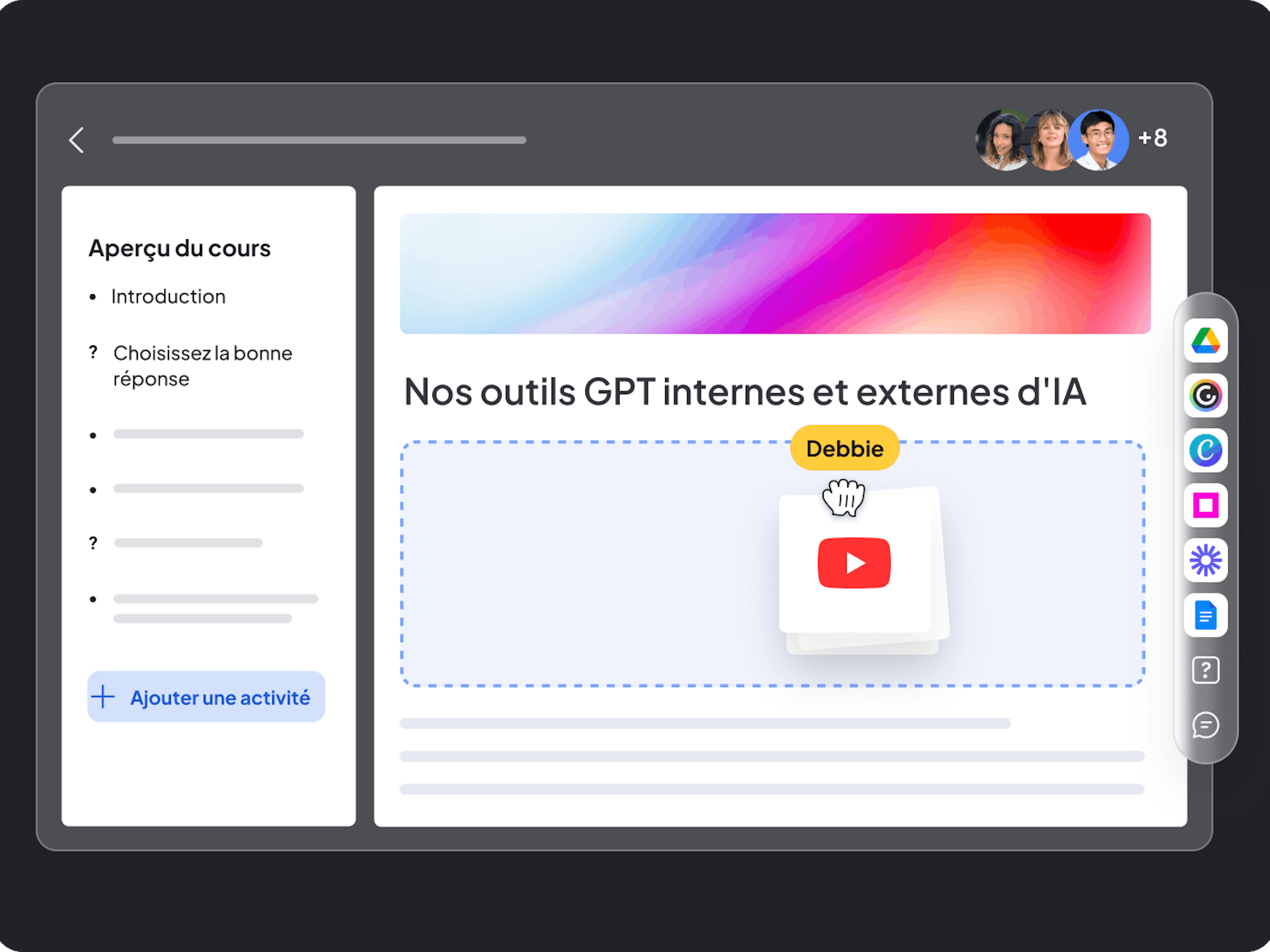 Les outils de création traditionnels ne vous facilitent pas la tâche. Avec des prompts 100% personnalisables, vos experts peuvent créer, itérer et collaborer sur des formations de qualité en toute confiance avec l'IA.