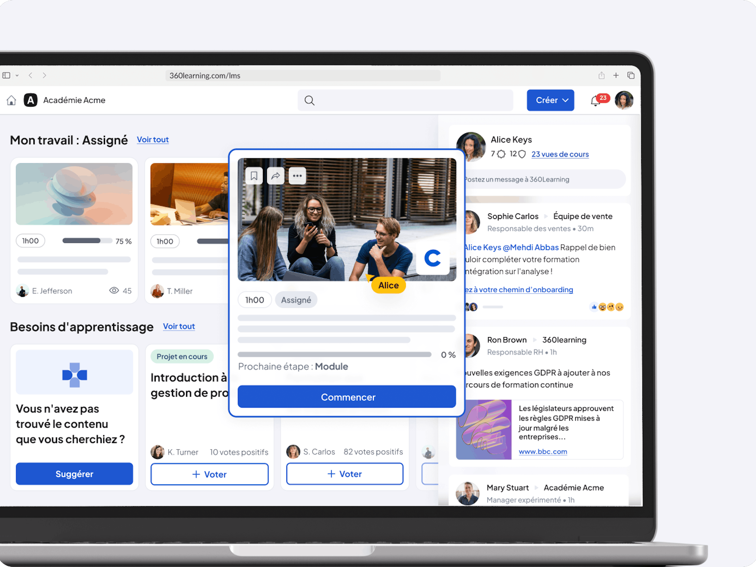 Vous êtes-vous déjà demandé quelles sont les formations dont vos employés ont vraiment besoin ? Avec 360Learning, plus besoin de le faire. Grâce à la déclaration instantanée et au vote des besoins de formation, les apprenants peuvent communiquer exactement la formation dont ils ont besoin pour réussir, depuis le LMS.