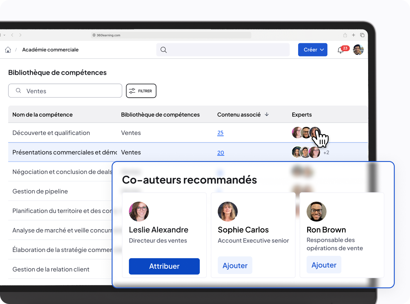 Vos experts assurent la qualité des formations. Décentralisez la création de contenus en assignant vos experts internes comme co-auteurs. Propulsé par l'IA, et simple à prendre en main, l’outil auteur du LMS 360Learning, couplé aux suggestions et commentaires internes, permet à tous de partager des connaissances immédiatement, sans pré-requis technique.
