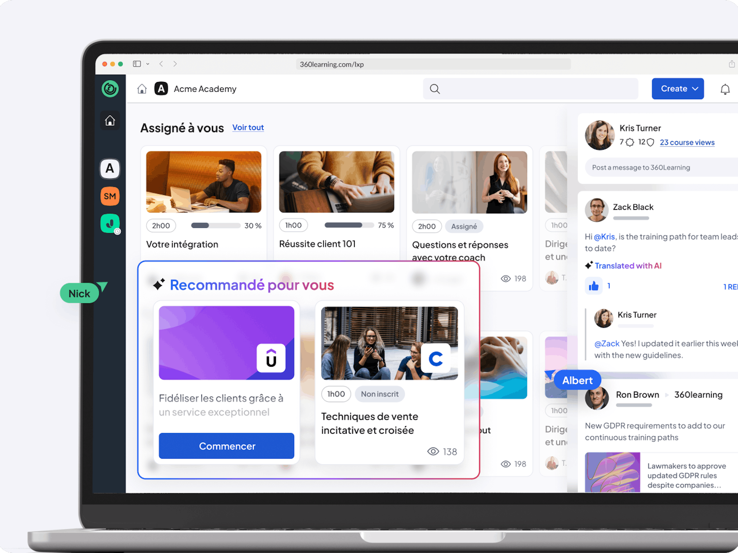 Combinez les connaissances de vos experts internes avec les meilleurs cours du marché pour offrir une formation riche et pertinente à vos apprenants.