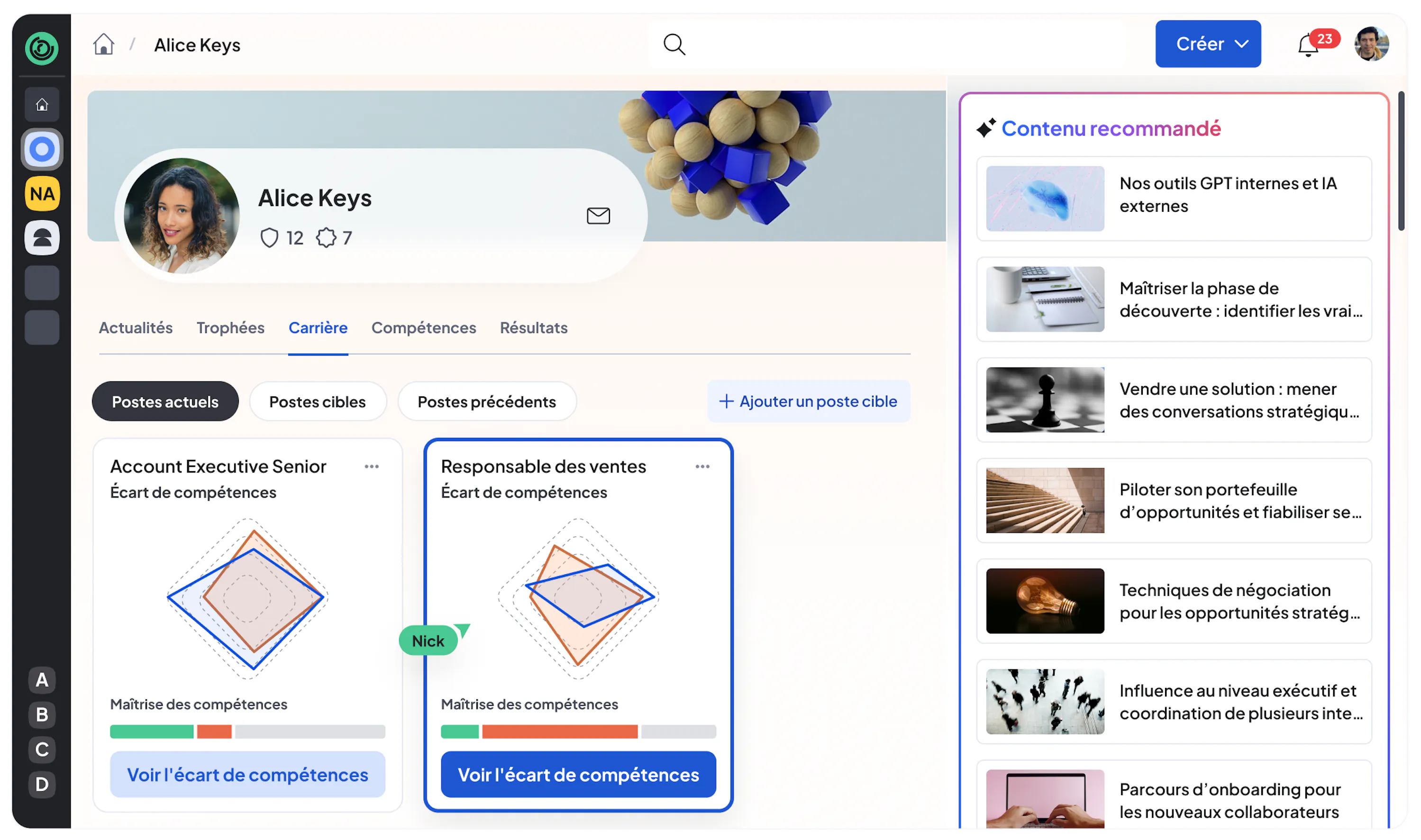 Les écarts de compétences freinent la performance de votre entreprise. Lancez des campagnes de montée en compétences et de requalification qui fournissent le bon contenu, au bon apprenant, et au bon moment.