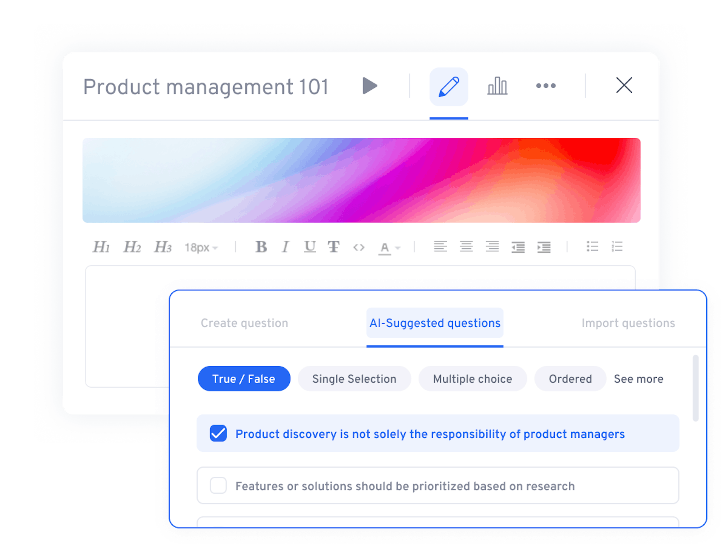 Create courses faster with our AI-powered question generator that creates custom quizzes with a single click.