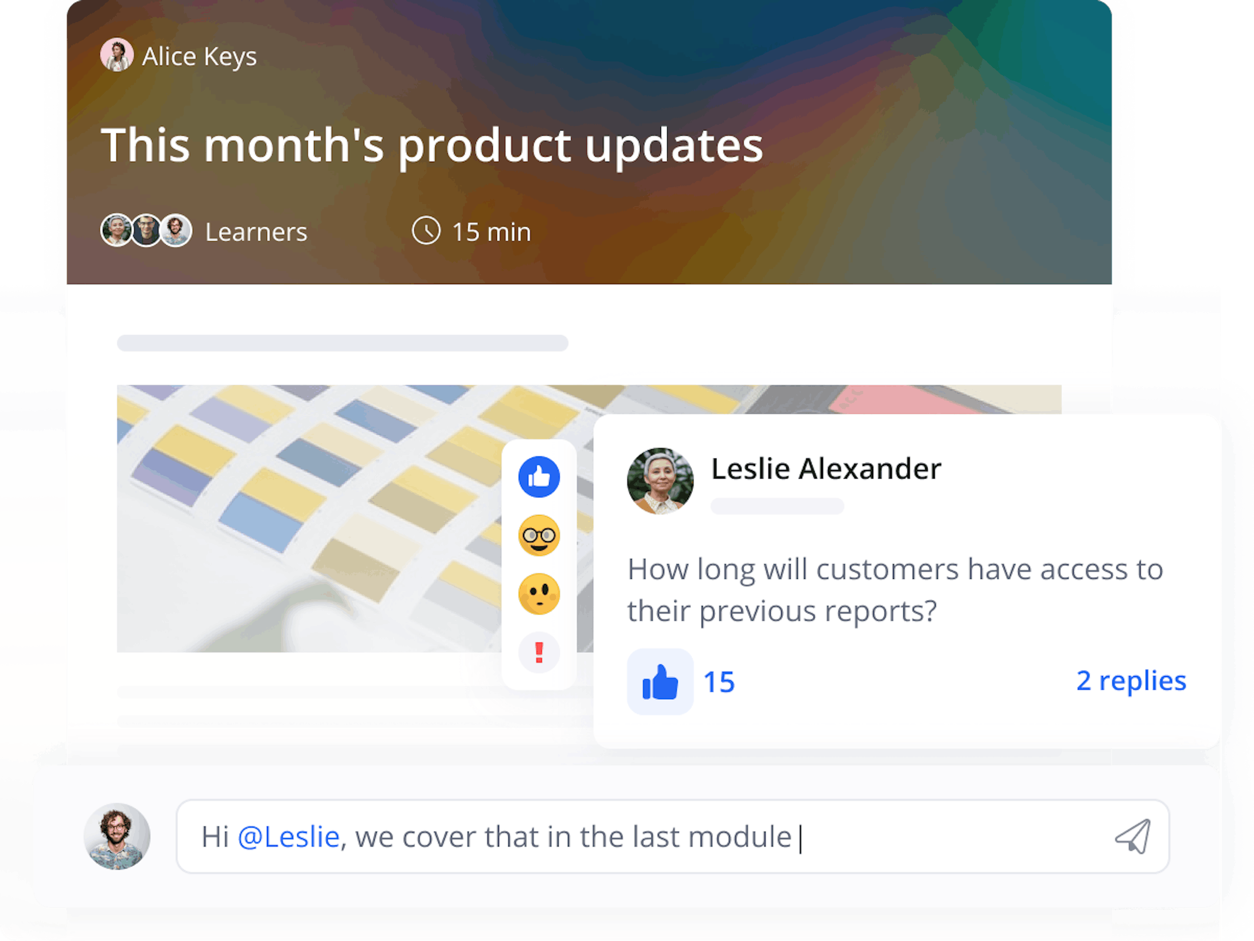 Bringing your training online shouldn’t mean sacrificing human connection. Enable deeper learning with intentional peer interactions and knowledge sharing. The best part? People can learn in the flow of their work.