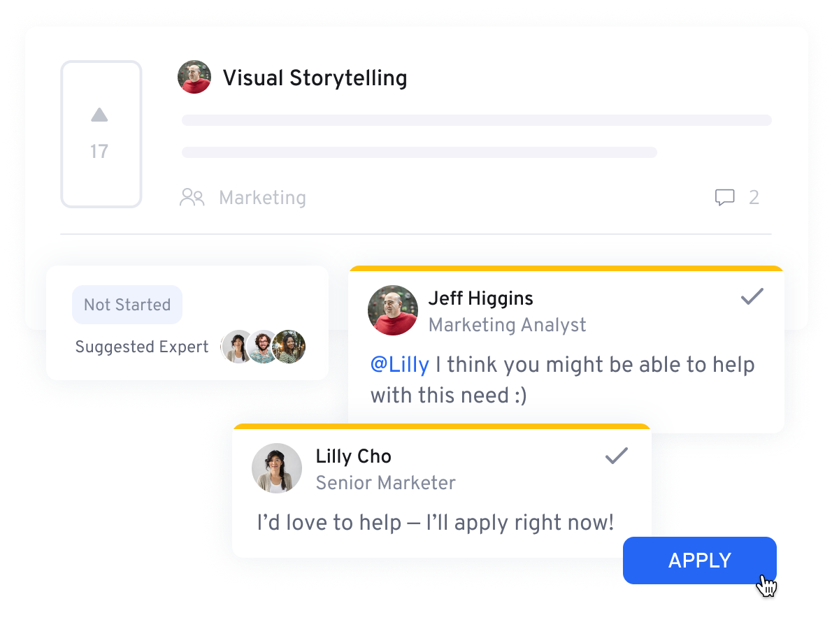 77% of employees say they have untapped knowledge to share with their organisation. This doesn’t have to be the case anymore. 360Learning allows you to easily tap into the knowledge of your employees and find in-house subject-matter experts with learner suggestions and AI.