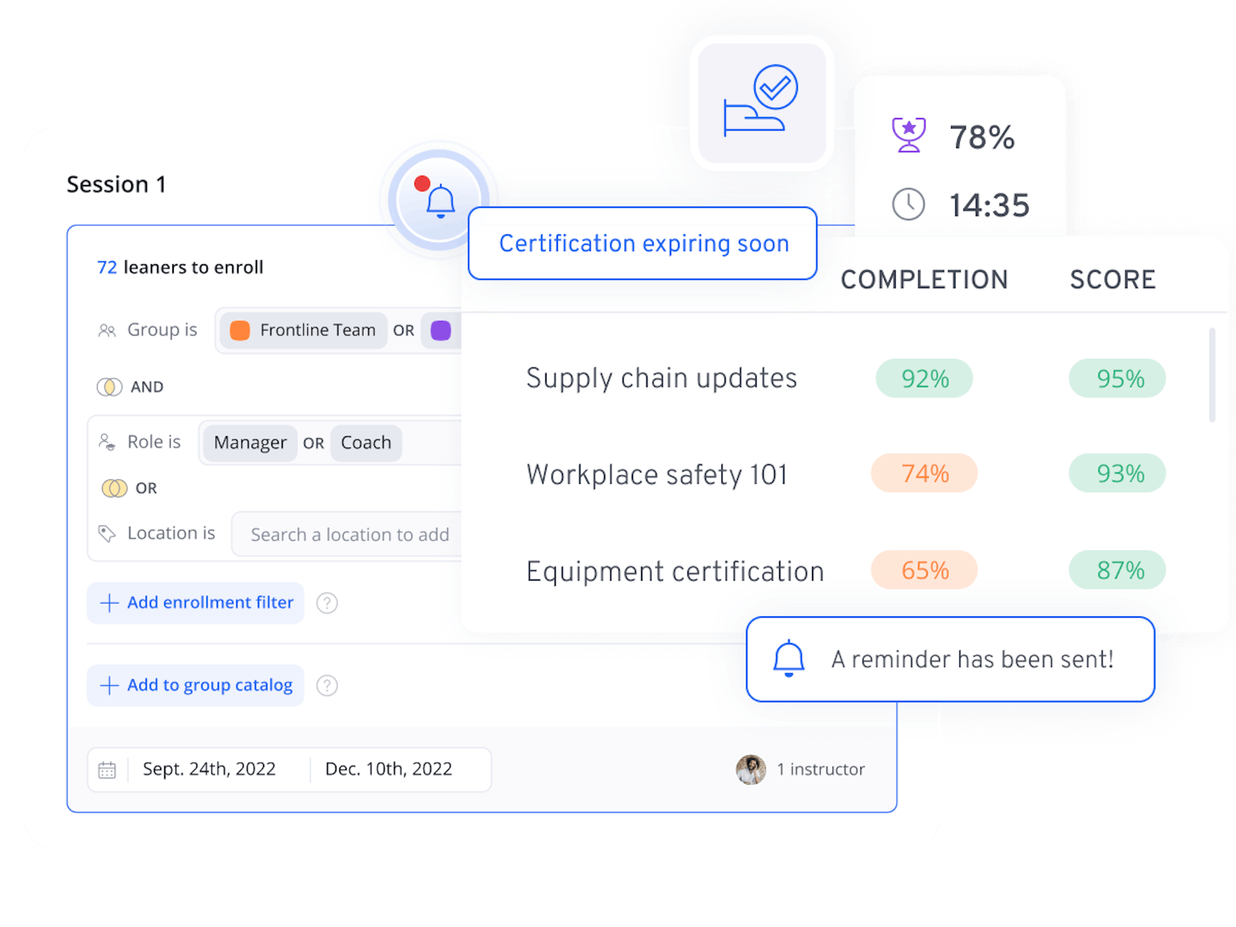 Zero in on specific audiences with powerful and dynamic audience targeting using different filter options. You can filter by learner, group, role, location, or any predefined custom fields.