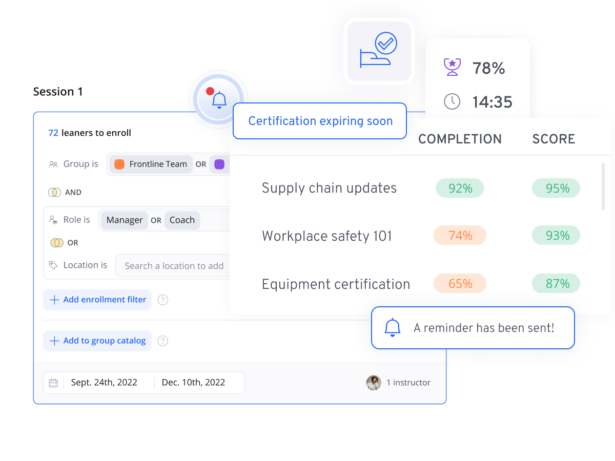 Zero in on specific audiences with powerful and dynamic audience targeting using different filter options. You can filter by learner, group, role, location, or any predefined custom fields.