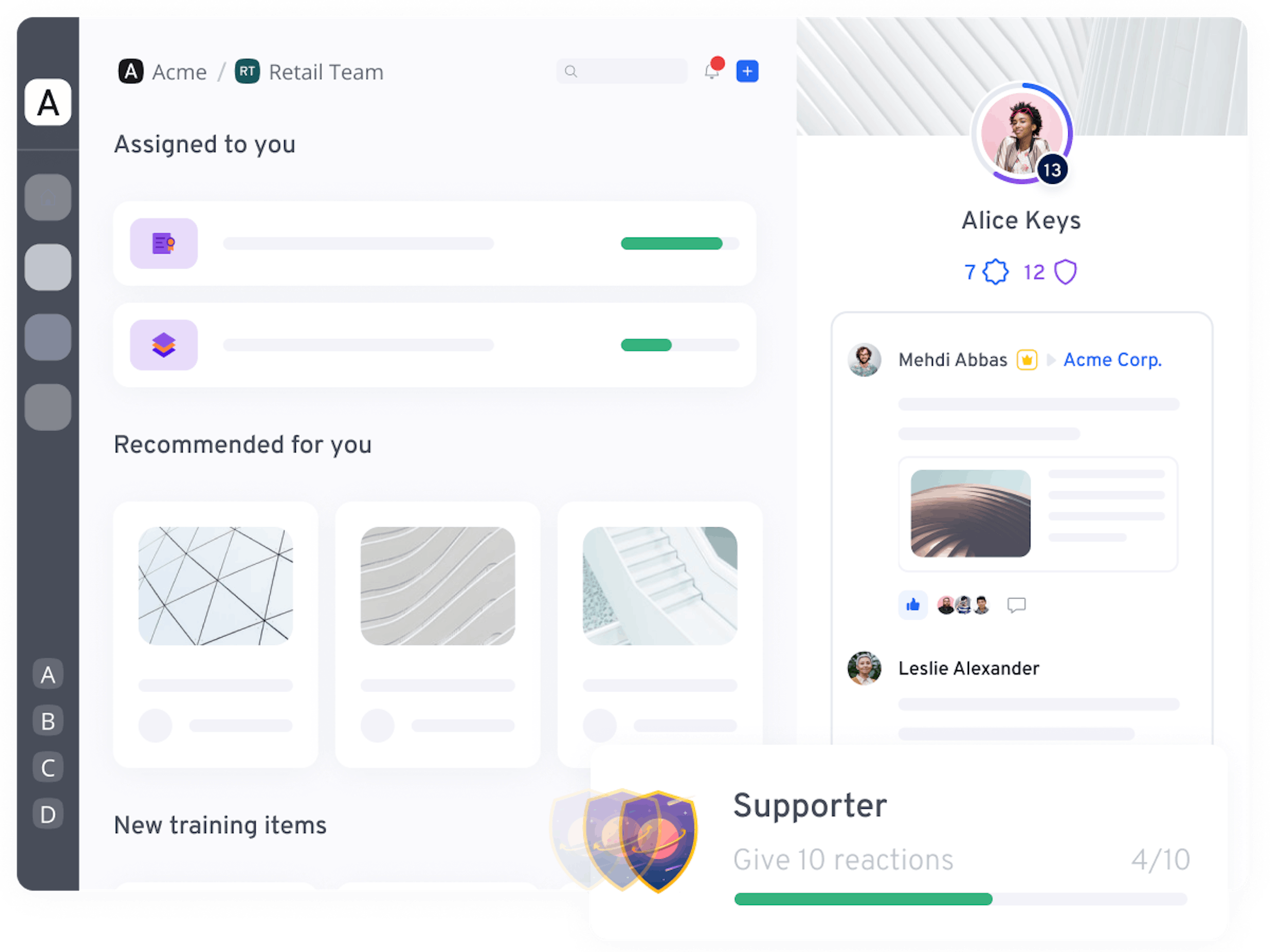 77% of employees say they have untapped knowledge to share with their organization. That doesn't have to be the case anymore. Easily tap into the knowledge of your employees and find in-house subject matter experts with learner suggestions and 360Learning's AI expert-identification software.