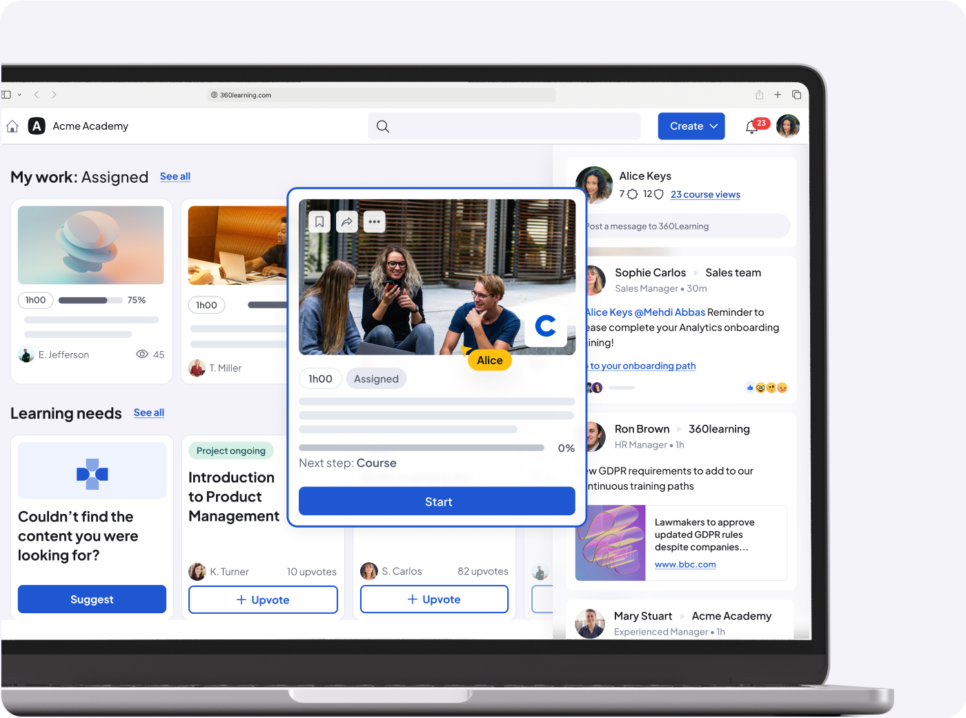 360Learning helps companies upskill from within by turning internal experts into learning champions. Our collaborative LMS makes it easy to onboard employees, train customer-facing teams, and enable partners, all in one place.