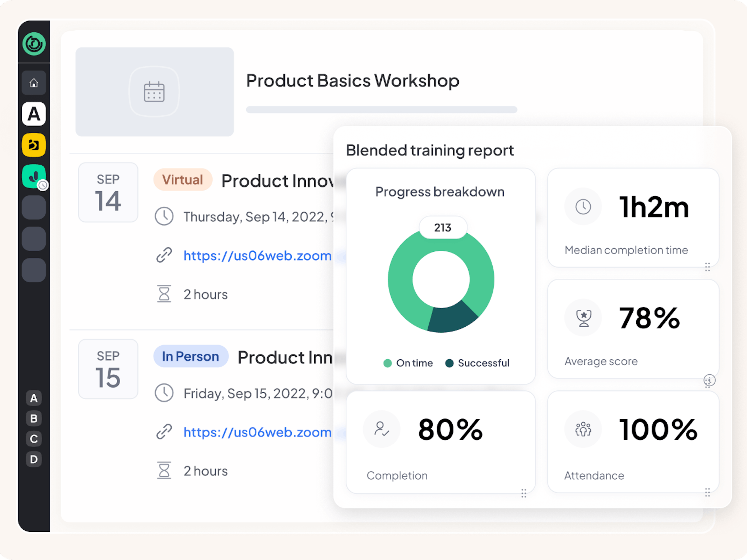 Remove the headache of repetitive, error-prone tasks. Schedule any number of live trainings, in person or virtual, in a few clicks.