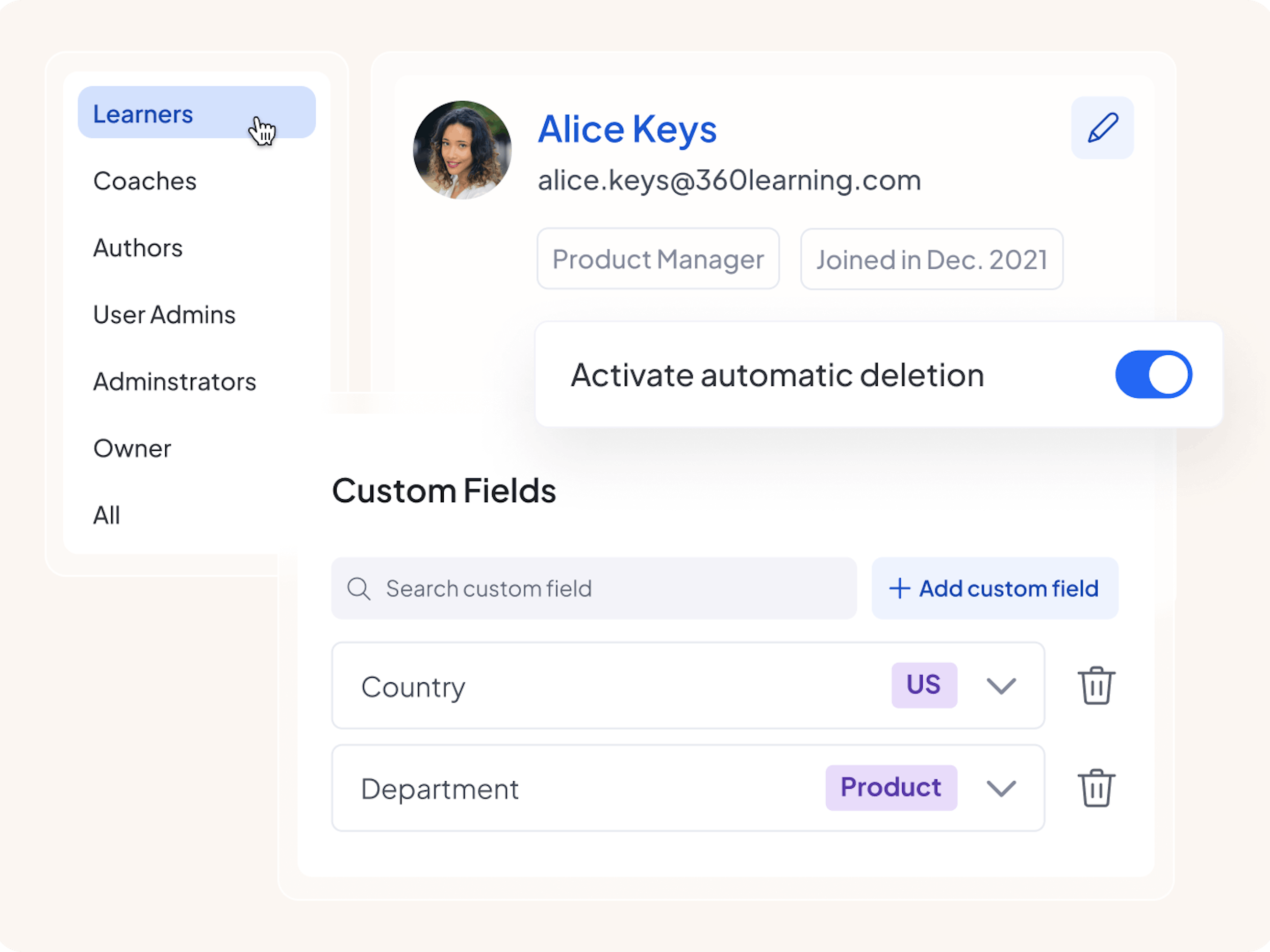 Creating custom integrations and near real-time syncing is a breeze with 360Learning’s robust and scalable API.