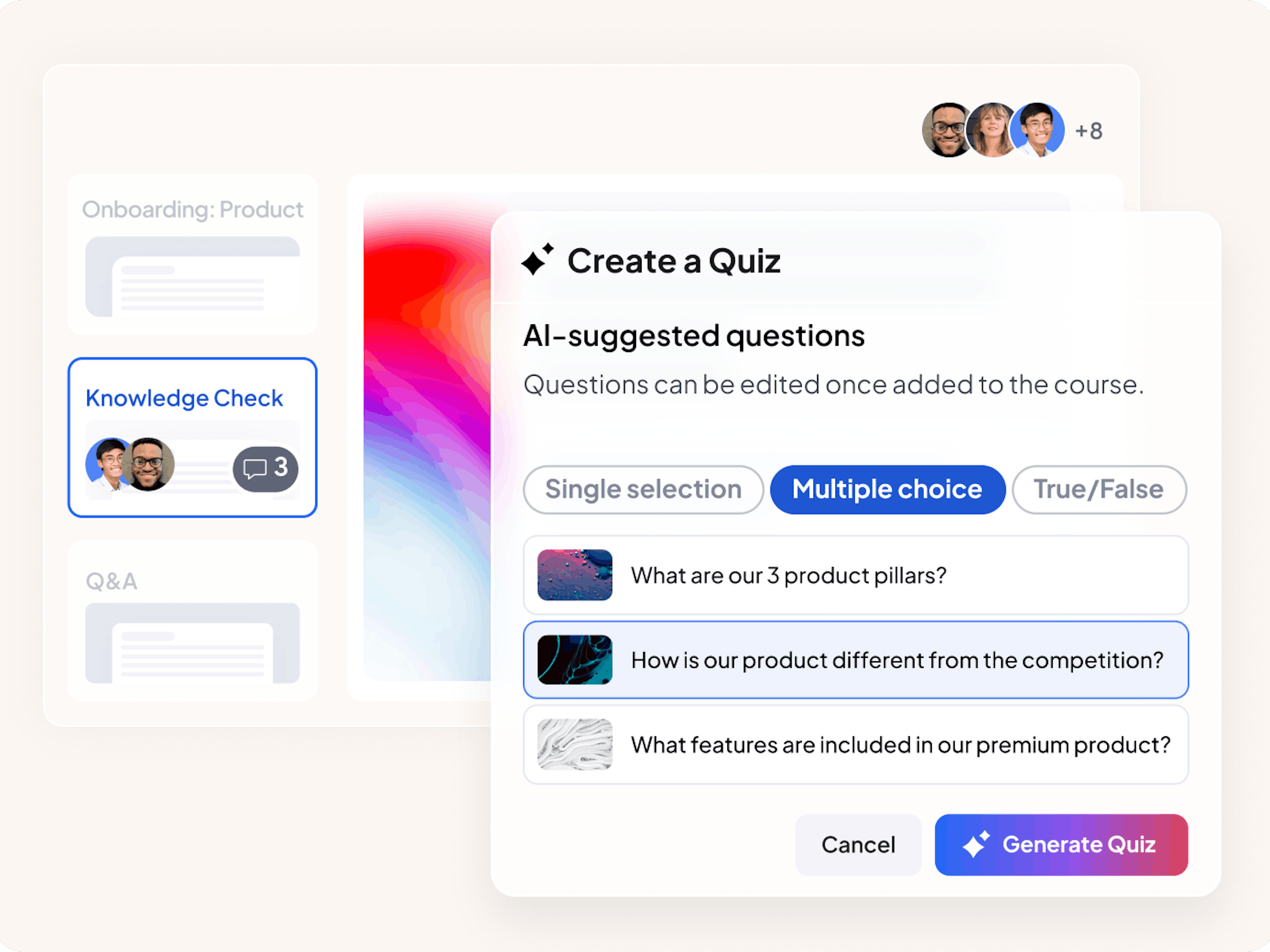 Effortlessly create engaging courses. With as little as a title, AI can suggest course descriptions, outlines, illustrations, and key takeaways.