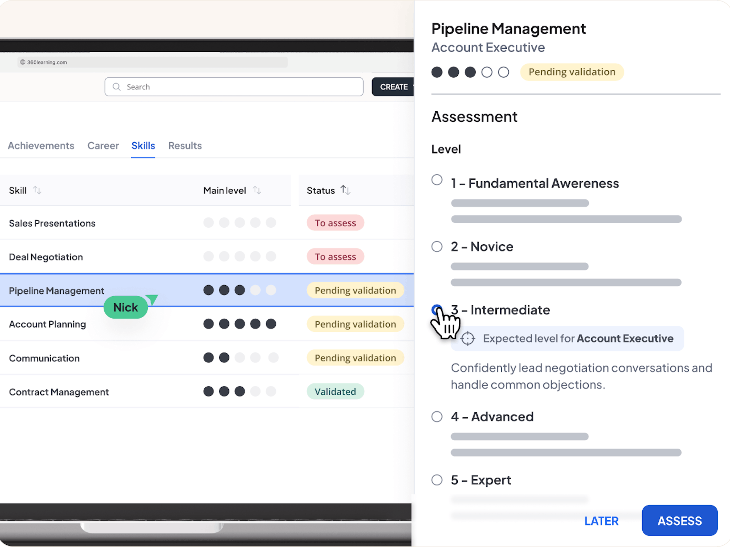 Centralize each learner’s skills and assessment history in one view—automatically updated to save you from manual admin.