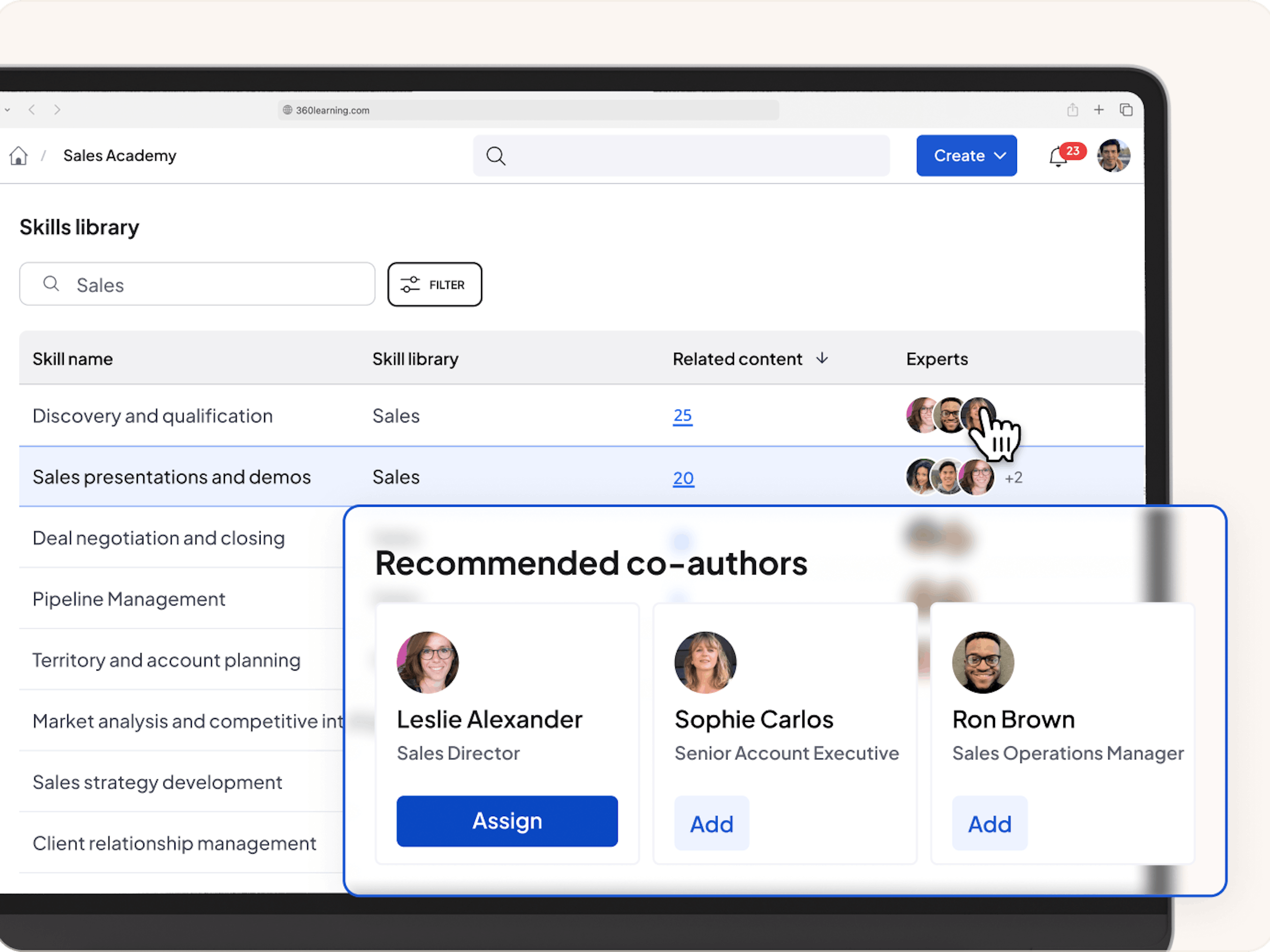 Your training catalog shouldn’t be a black box. Use AI to automatically tag content with relevant skills, then harness collaborative learning to identify content gaps and tap into your internal experts to fill them.