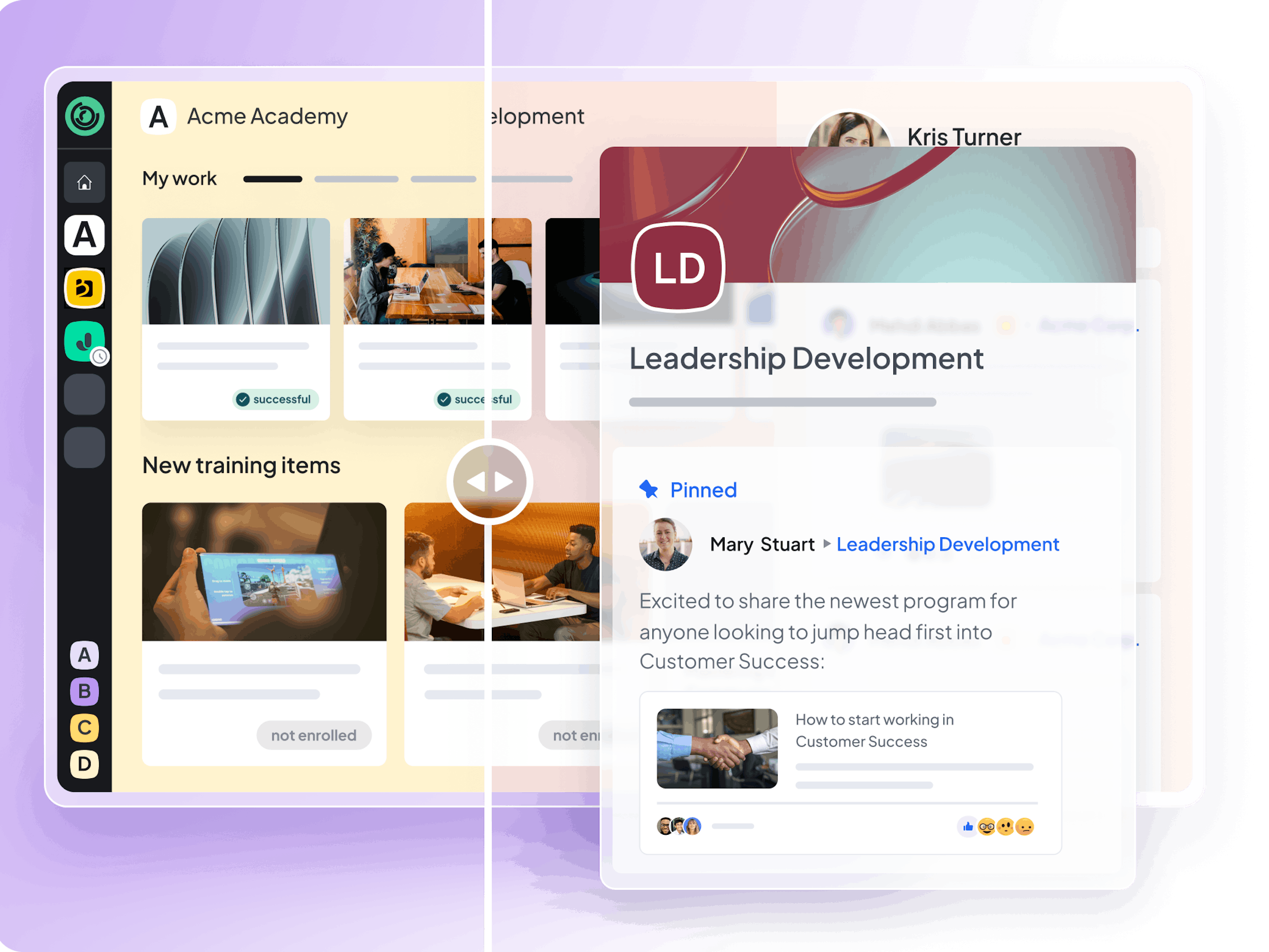 Home sweet (training) home! Make your learners feel like they belong in their learning community, even when they log in for the first time. Stay consistent with your brand and company guidelines with advanced customization.