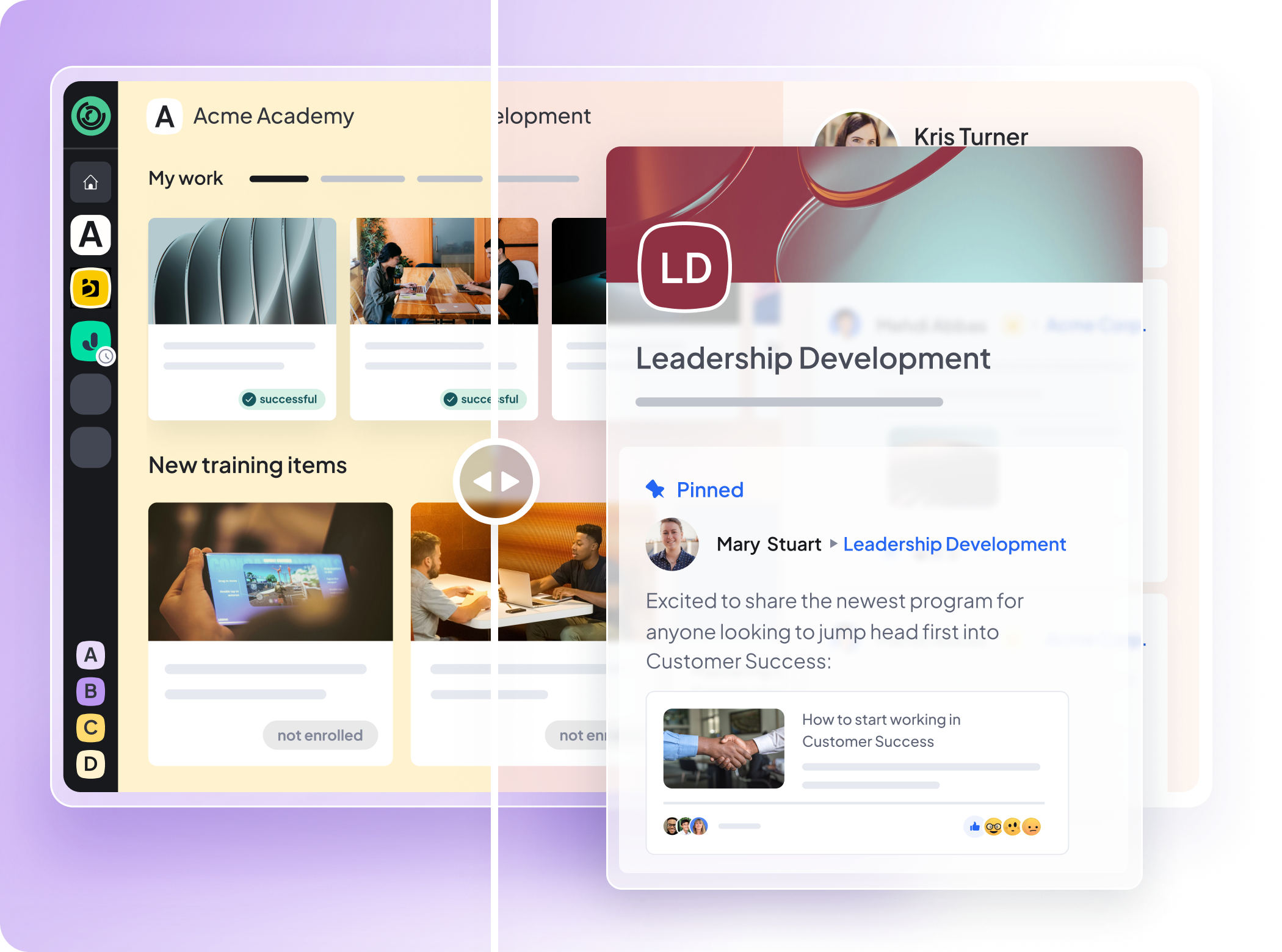 Home sweet (training) home! Make your learners feel like they belong in their learning community, even when they log in for the first time. Stay consistent with your brand and company guidelines with advanced customization.