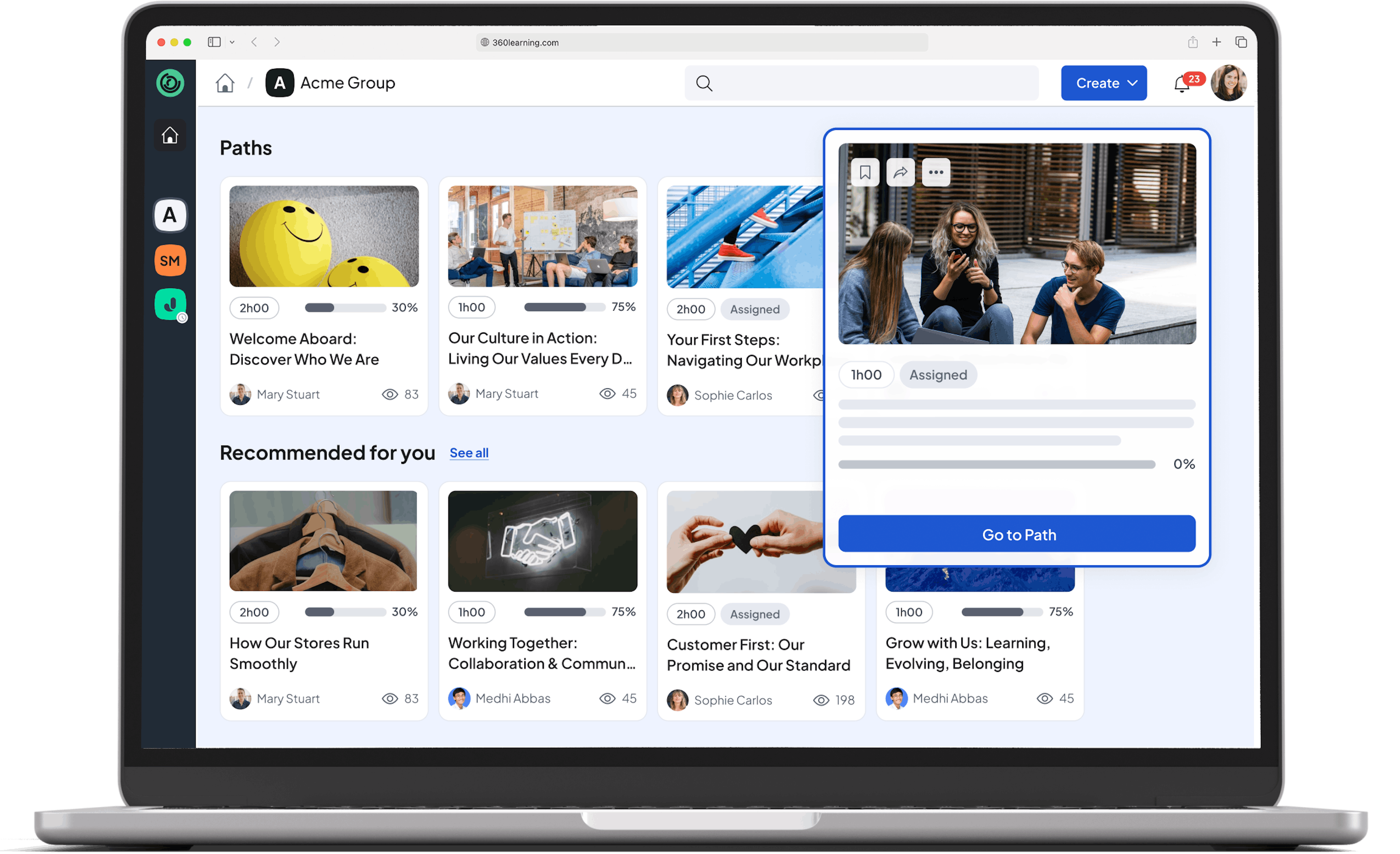 Your new joiners have unique learning needs that vary based on their role, tenure, and location. Scale your onboarding with role-specific paths.